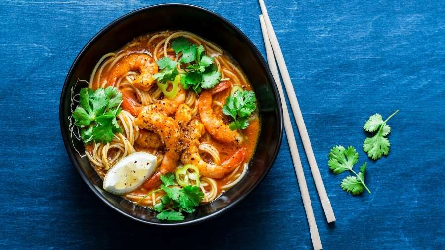 Originating from Peranakan culture, the spicy noodle soup we love today has been shaped by Southeast Asian culture. Laksa traditionally consists of noodles, topped with ingredients such as chicken, seafood, egg, sprouts and/or other Asian vegetables. Then, the fragrant, sweet soup is usually served with a spicy flavoured broth and topped with fresh vegetables and spices.